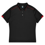 - Set in sleeve polo with self fabric collar, front & back yoke and side panel in ice hole mesh with contrast piping and under front sleeve panel with contrast piping